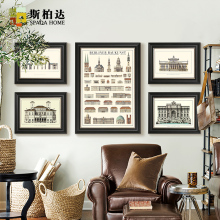 美式复古建筑装饰画欧式墙壁挂画客厅壁画三联画沙发背景画框组合