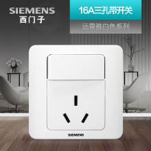 西门子三孔插座面板带开关 远景雅白86型家用16A空调 墙壁三插暗