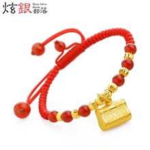 炫银部落999足金黄金手链红绳转运珠 儿童长命锁吊坠 送宝宝满月