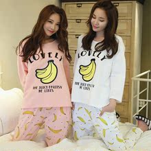 韩版纯棉春秋季睡衣女长袖甜美可爱香蕉女孩全棉质休闲家居服套装