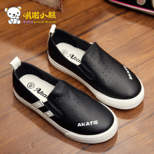 儿童黑色皮鞋男童女童鞋潮2016春秋一脚蹬懒人鞋休闲宝宝单板鞋