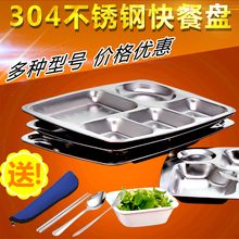 正品304不锈钢快餐盘饭盘 加厚加深大六格分餐盘学生食堂专用盘子