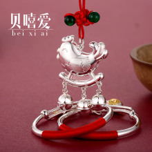 贝嘻爱长命锁纯银宝宝 鸡宝宝银手镯999纯银婴儿小孩满月套装礼盒