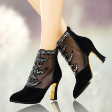 清仓特价安迪拉时尚性感细高跟水钻真皮网纱短靴女网靴单靴裸靴AS