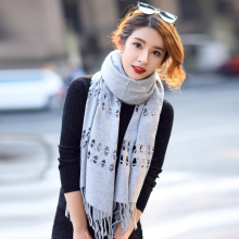 雪米尔韩国秋冬季厚羊毛围巾披肩两用针织镂空灰色围巾时尚百搭