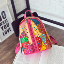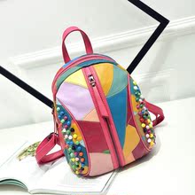 2016新品圆桶亮片 柳钉防泼水女背包 学院派甜美韩版双肩包