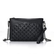 2016冬季新款女士包袋斜挎包信封包铆钉拉链斜挎手提羊皮