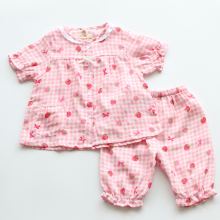 草莓小兔儿童夏季薄纯棉双层纱布女童短袖睡衣套短袖7分裤家居服