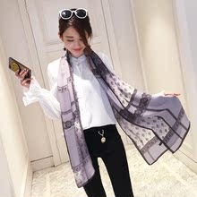 加大真丝丝巾女桑蚕丝围巾春夏秋季百搭丝绸新款印花纱巾长款