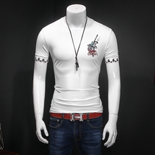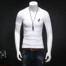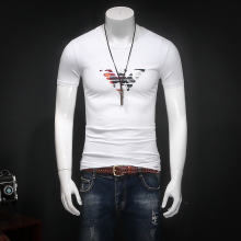 夏季新款莫代尔男士圆领t恤衫时尚欧美印花短袖T恤潮流修身打底衫