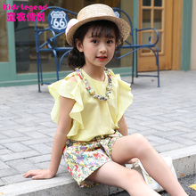 女童夏装2017新款童装短袖T恤碎花裤套装女孩中大童休闲两件套