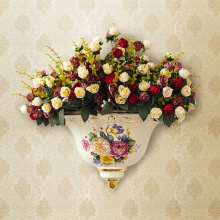 欧式奢华陶瓷描金插花花器壁饰创意客厅电视背景墙饰装饰壁挂摆件