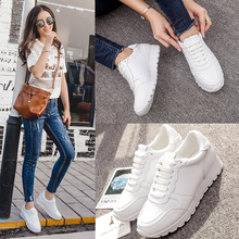2016新款小白鞋女真皮系带运动鞋厚底韩版学生女百搭圆头休闲板鞋
