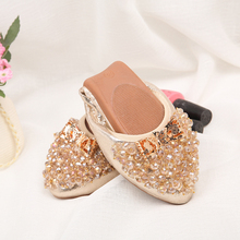 蛋卷鞋女水钻尖头套脚线口平底真皮软底防滑孕妇大码妈妈单鞋女鞋