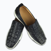 纯正新加坡尼罗鳄鱼腹部皮男士休闲厚底皮鞋 真鳄鱼肚皮一脚蹬