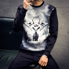 春装新款男士大码圆领套头印花卫衣上衣韩版修身棒球服外套男装潮