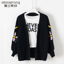 针织外套女短款开衫宽松韩版2017新款春装针织女长袖毛衣外套春秋