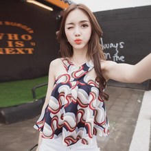 夏季新款2017韩版露肩吊带挂脖雪纺衫百搭无袖外穿短款背心女上衣