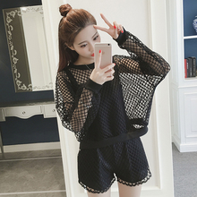 2017春装新款潮韩版宽松长袖卫衣休闲高腰短裤两件套时尚套装女夏