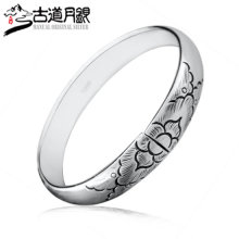 古道月银 纯银手镯99纯银女 宽面版足银镯子送妈妈花悦容1089