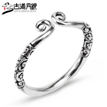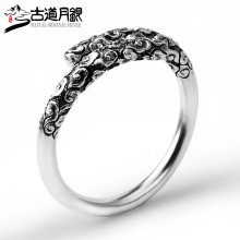 古道月银纯银戒指999纯银 男女情侣指环足银对戒手工银饰品龙凤戒