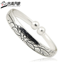 古道月银 99纯银手镯女 云南手工送女友蒜头复古莲花银镯子208
