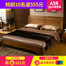 实木床1. 8米双人床中式实木床水曲柳实木床简约现代成人床婚床