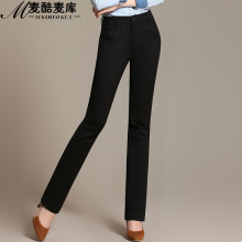 2017新款女裤子微喇叭裤高腰西裤长裤秋季休闲修身黑色显瘦微喇裤