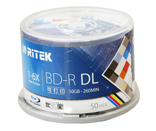 台湾产铼德Ritek光盘BD-R DL1-8X 50G 蓝光可打印50片桶装刻录盘