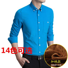 冬季男士加绒加厚长袖保暖衬衫青年修身纯棉灯芯绒大码打底衬衣潮