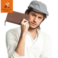 稻草人手包男士时尚复古商务男士长款拉链钱包磨砂皮牛皮手拿包潮