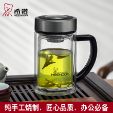 希诺办公杯女士男士带手柄玻璃杯带把双层隔热商务礼品办公室水杯