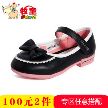 【100元2件】牧童童鞋女童皮鞋春秋甜美蝴蝶结百搭学生单鞋包边