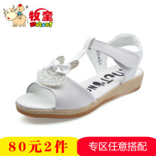 [100元2件]牧童童鞋女童凉鞋夏款防滑耐磨水钻蝴蝶结鱼嘴公主凉鞋