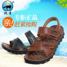[100元2件]牧童女童凉鞋夏季女正品小高跟沙滩鞋中小学生凉鞋露趾