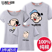 亲子装夏装短袖t恤 一家三口全家装纯棉夏季大码运动装父子母女装
