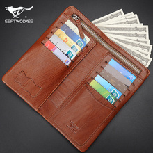 七匹狼钱包男士长款拉链真皮头层牛皮手拿包手抓钱夹大容量正品