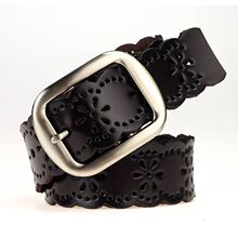 Geremen 皮带女士镂空白色真皮韩版休闲宽腰带 女款牛皮腰带