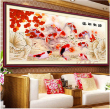 印花年年有余十字绣 鸿运当头连年有余 十字绣九鱼图新款客厅系列