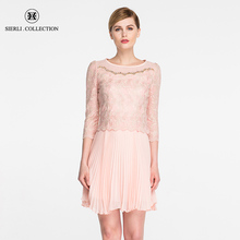 斯尔丽瑟俪正品 春夏装新品绣花蕾丝手工钉珠百褶雪纺连衣裙