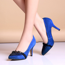 2016春夏季新款 羊皮水钻单鞋 真皮蕾丝细高跟尖头浅口套脚女鞋子