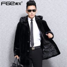 2016新款貂皮大衣男整貂进口皮草带帽中长款水貂外套男装裘皮大衣