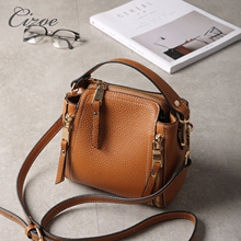 cizoe真皮迷你斜挎包手机小包包女包波士顿枕头包牛皮手提单肩包