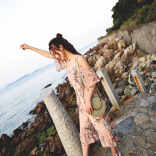 2017新款女装雪纺印花休闲时尚阔腿裤连体裤韩版露肩短袖连体衣夏