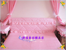 特价纯棉 小粉色格 单层 夹棉 绗缝床头套 床头罩 防尘盖布 定做