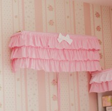小粉格 100%纯棉 布艺 韩式 荷叶边 挂式 半包 空调罩 防尘罩