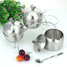 不锈钢调味罐 套装 底座带勺 创意调味盒 调料瓶三件厨房用具正品