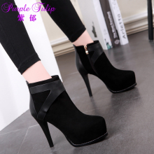 2016春秋新款女鞋真皮高跟短靴防水台高跟鞋细跟短靴马丁靴女靴子