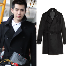 吴亦凡同款青年风衣中长款冬季男士双排扣大翻领羊毛呢大衣外套潮