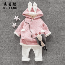 女宝宝冬装套装0-1-3岁加绒加厚女童婴儿衣服2016秋冬两件套外出